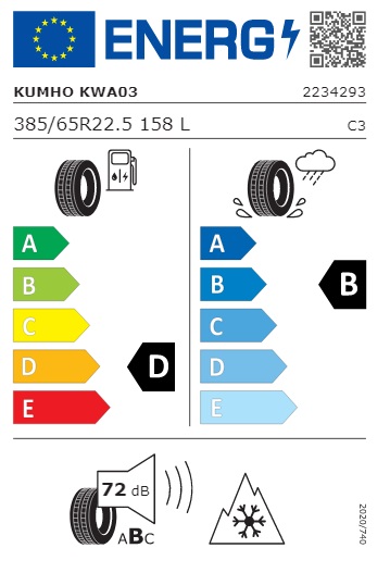 Kumho KWA03 385/65R22.5 winter tire for steering axle with the latest technology.