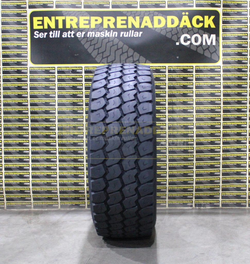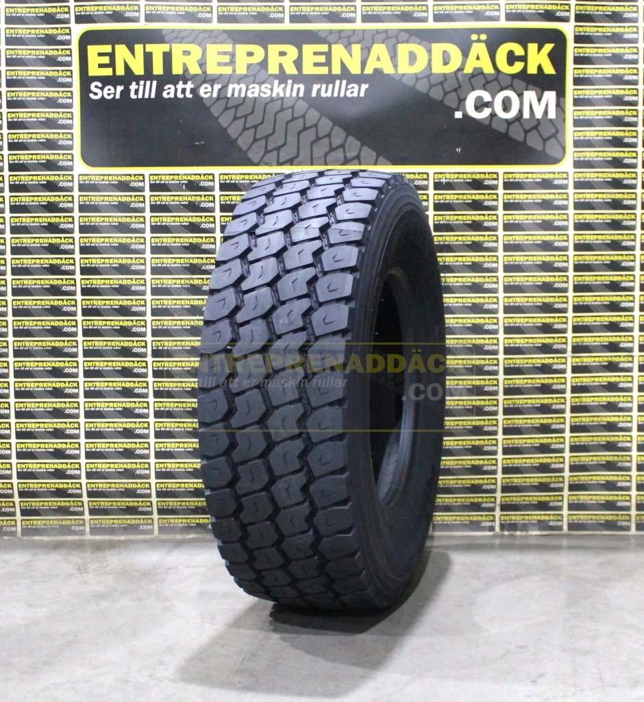 Anläggningsdäck med djupt mönster på 18mm. Belastningsklass 164K godkänt för 10-tons axlar! Gummiblanding som är extra tålig mot skär och stickskador.